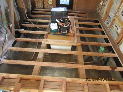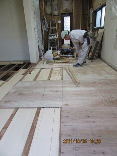 床 断熱材入替・2重貼りフロアー仕上げ・壁天井下地改修内装工事