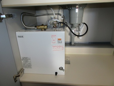 給排水設備は外部より増設、給湯設備はキッチン内部に電気温水器を設置しました。